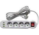 Power Strip 2USB 1USB-C Port 4Sockets 3Meters Cabel Standard Plug Elec