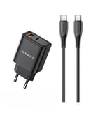 - Awei Dual Output Fast Charging Power Adapter 22.5W With Usb-C To Usb-C Cabel PD81C-Eu