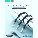 XiPin LX-45 3.4A Metal Nylon 3 in 1 Quick Charging Cable Lightning/Micro/Type-C 1.2M