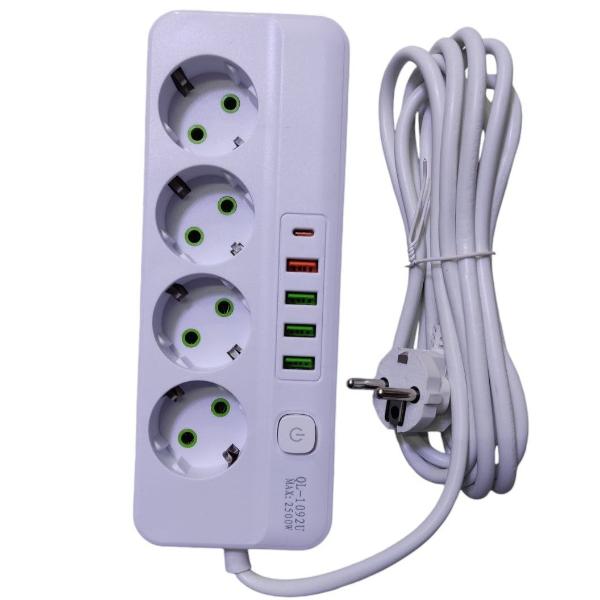 Introducing the 4USB 1USB-C Port 4Sockets Standard Plug Electrical Extension Cord - a versatile and efficient power strip designed for your charging needs. With 9 ports and a 3-meter cable, charge all your devices simultaneousl...