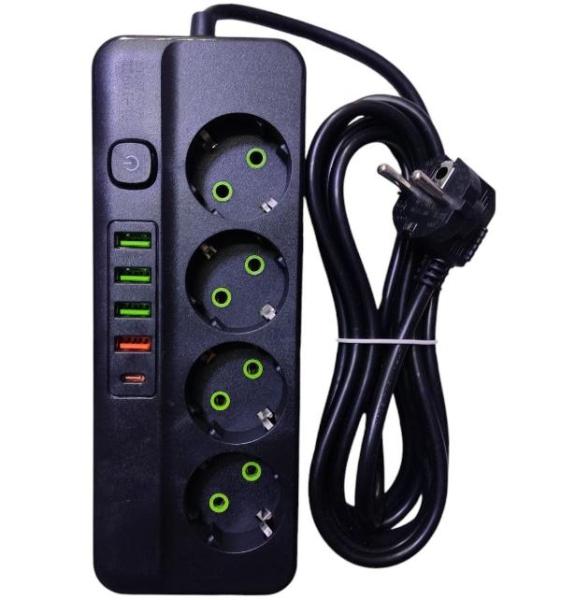 Elevate your charging experience with the Power Strip 2USB 1USB-C Port 4Sockets 3Meters Cabel Standard Plug Electrical Extension Cord. Safely and efficiently charge up to 7 devices at once with the MAX:10A-2500W Power Cord. Wit...