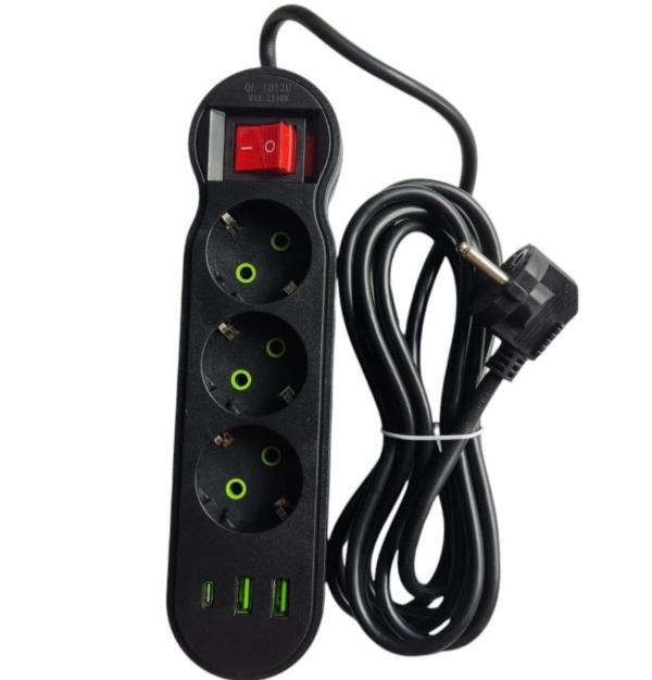 Maximize your charging capabilities with the Power Strip 2USB 1USB-C Port 3Sockets 3Meters Cable. This extension cord features 6 ports, including fast charging capabilities, allowing you to charge multiple devices at once. With...