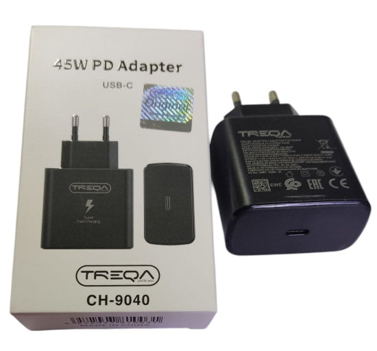 Upgrade your charging game with TREQA 45W PD Adapter USB-C CH-9040 (Black). With its powerful 45W output, you can charge your devices in no time. Its USB-C compatibility allows for a wide range of device charging, making it a v...